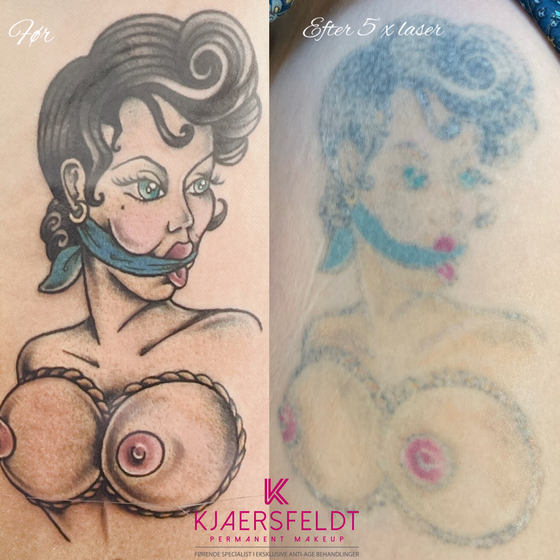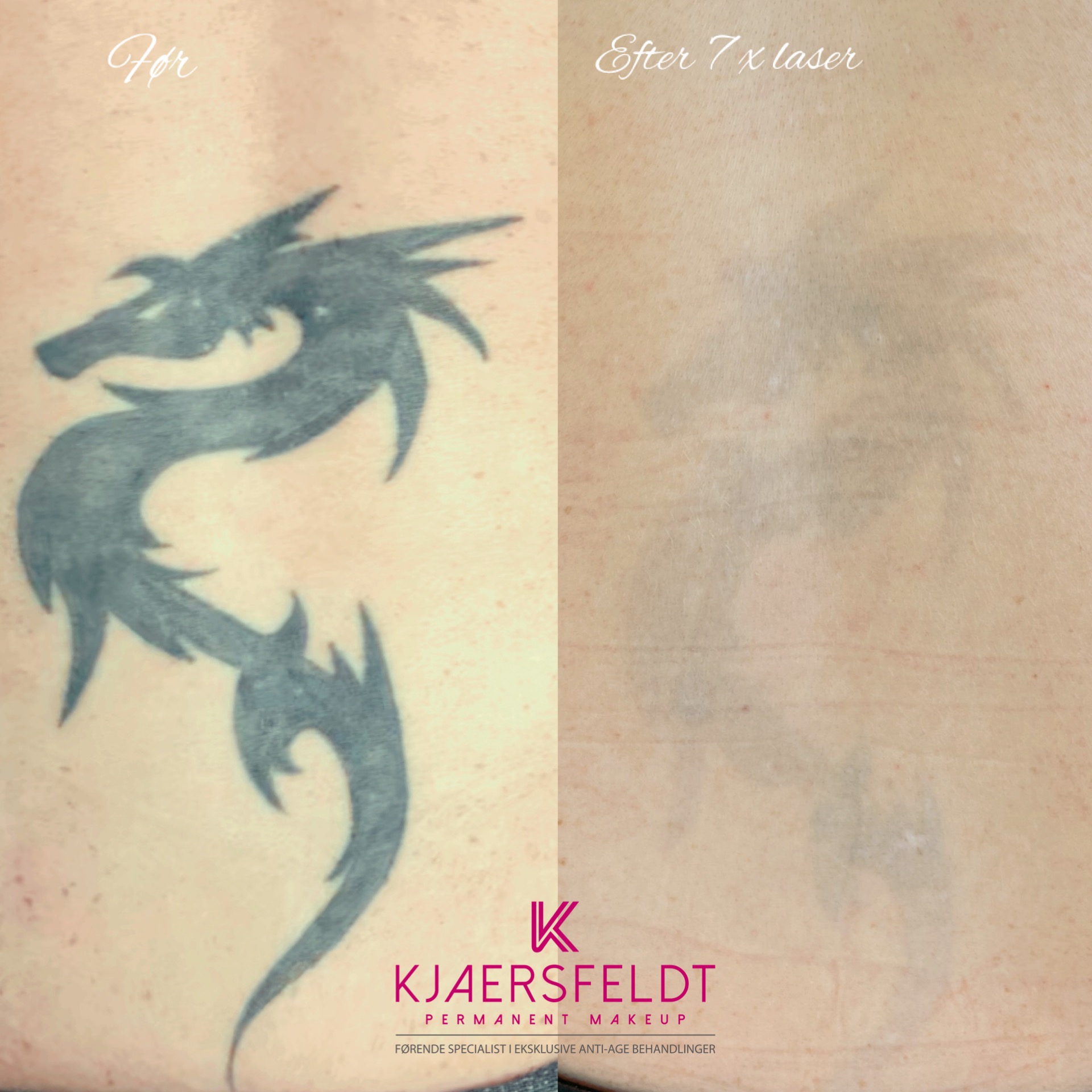 Hos Kjaersfeldt kan vi ikke garantere hvor mange behandlinger fjernelse af en tatovering kræver. Det er en vurderingssag hver gang, og det kan variere meget fra person til person.
